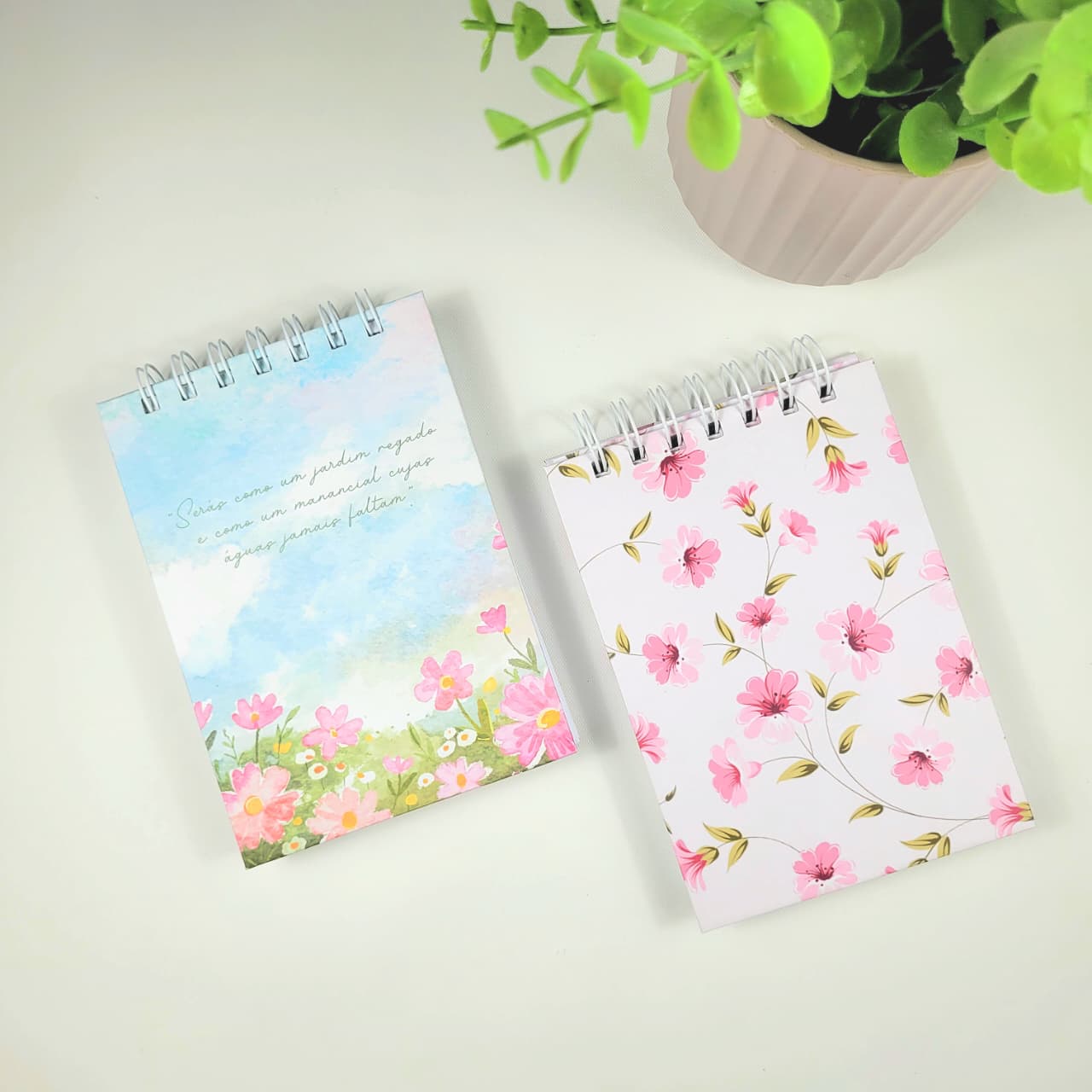 O kit com 2 mini cadernetas é perfeito para quem ama praticidade sem abrir mão de estilo e delicadeza. Compactas e versáteis, elas são ideais para levar na bolsa, mochila ou deixar sempre por perto para anotar ideias, compromissos, lembretes ou inspirações do dia.
